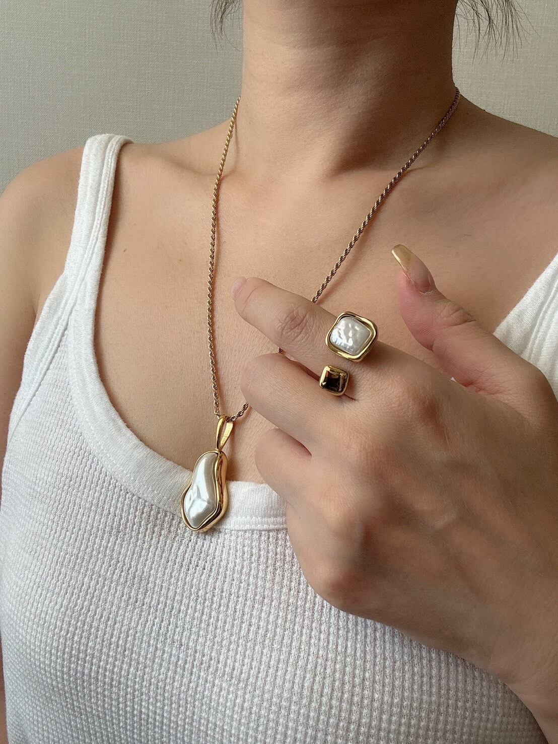 繊細な光沢とモダンなデザインが融合した「ぼたんリング」は、まるでアンティークジュエリーのような存在感を放つ一点。