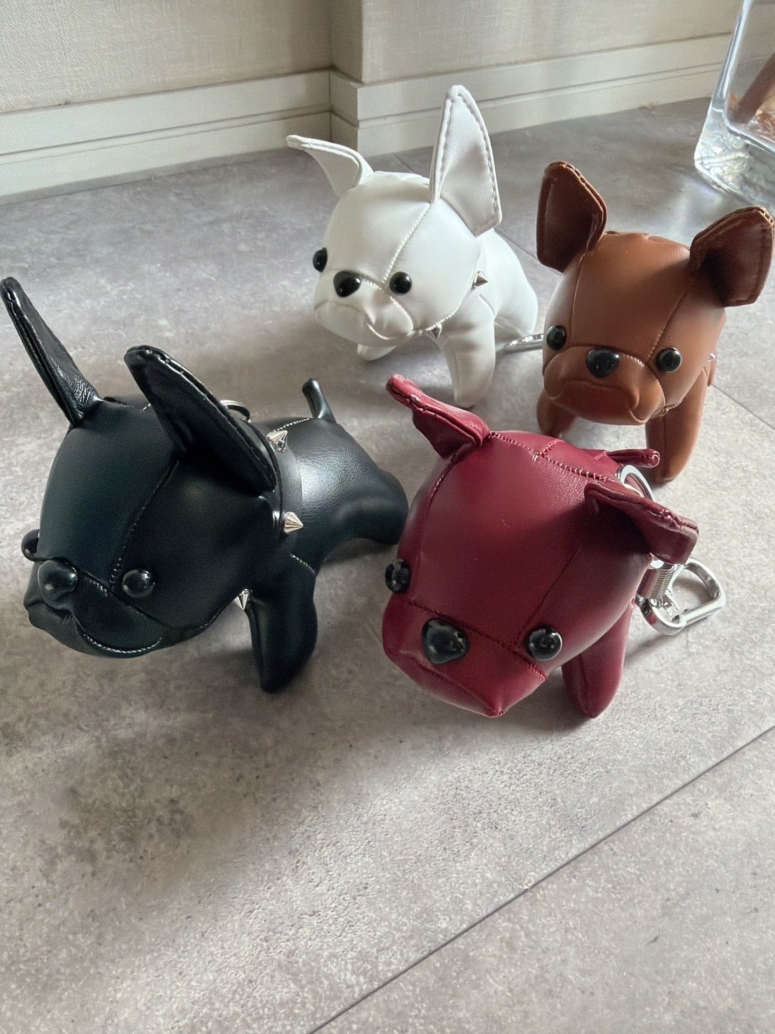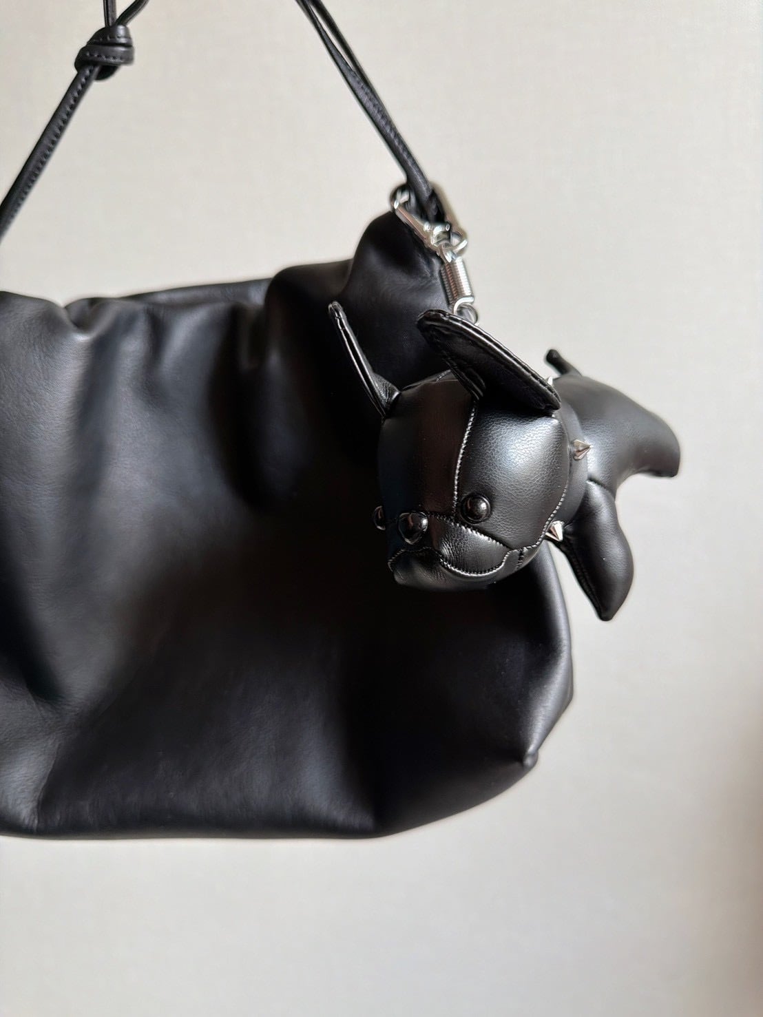 フレンチブルドッグをモチーフにした上品でユニークなチャームです。滑らかな質感のフェイクレザーを使用し、高級感のある佇まいに仕上げました。