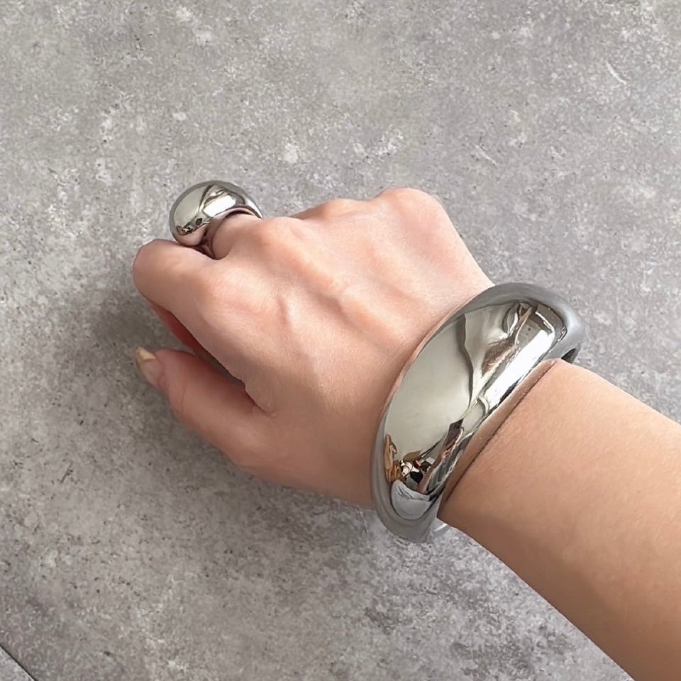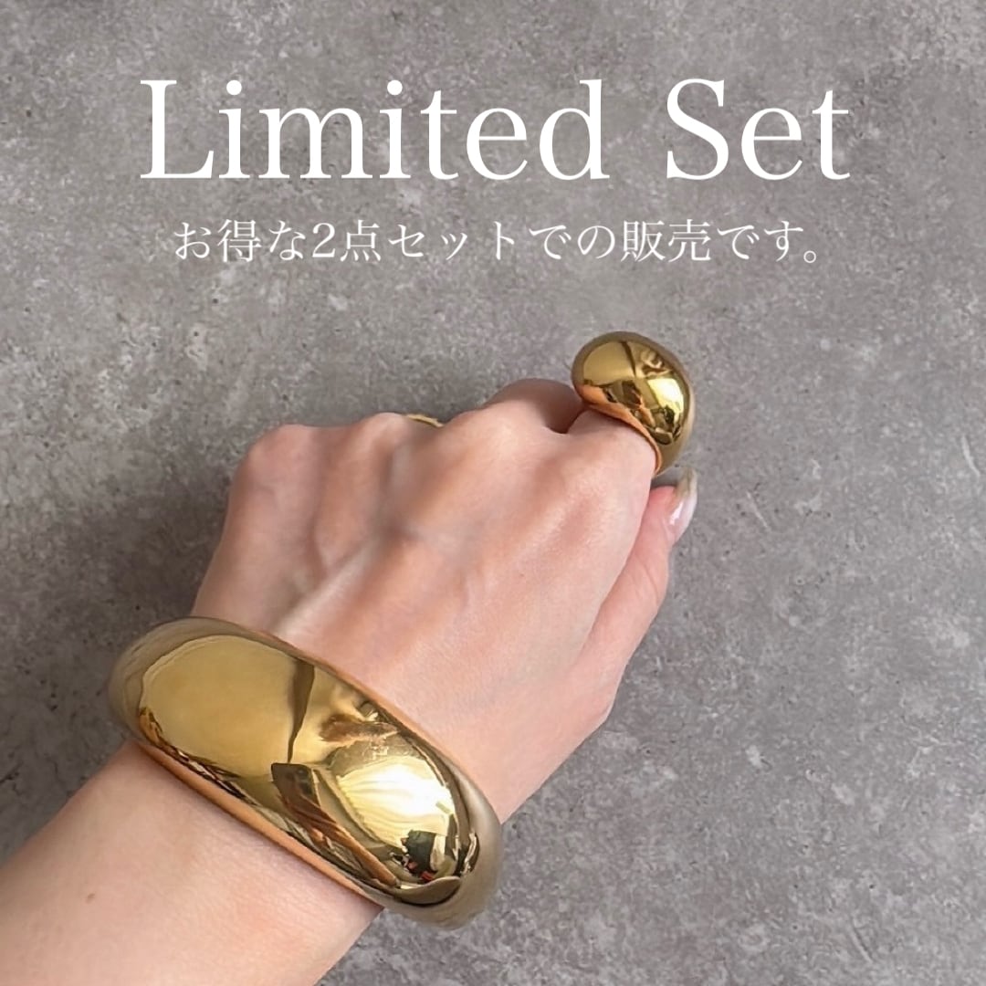 【限定2点セット】クラシックステンレスバングル × oversize drop ring